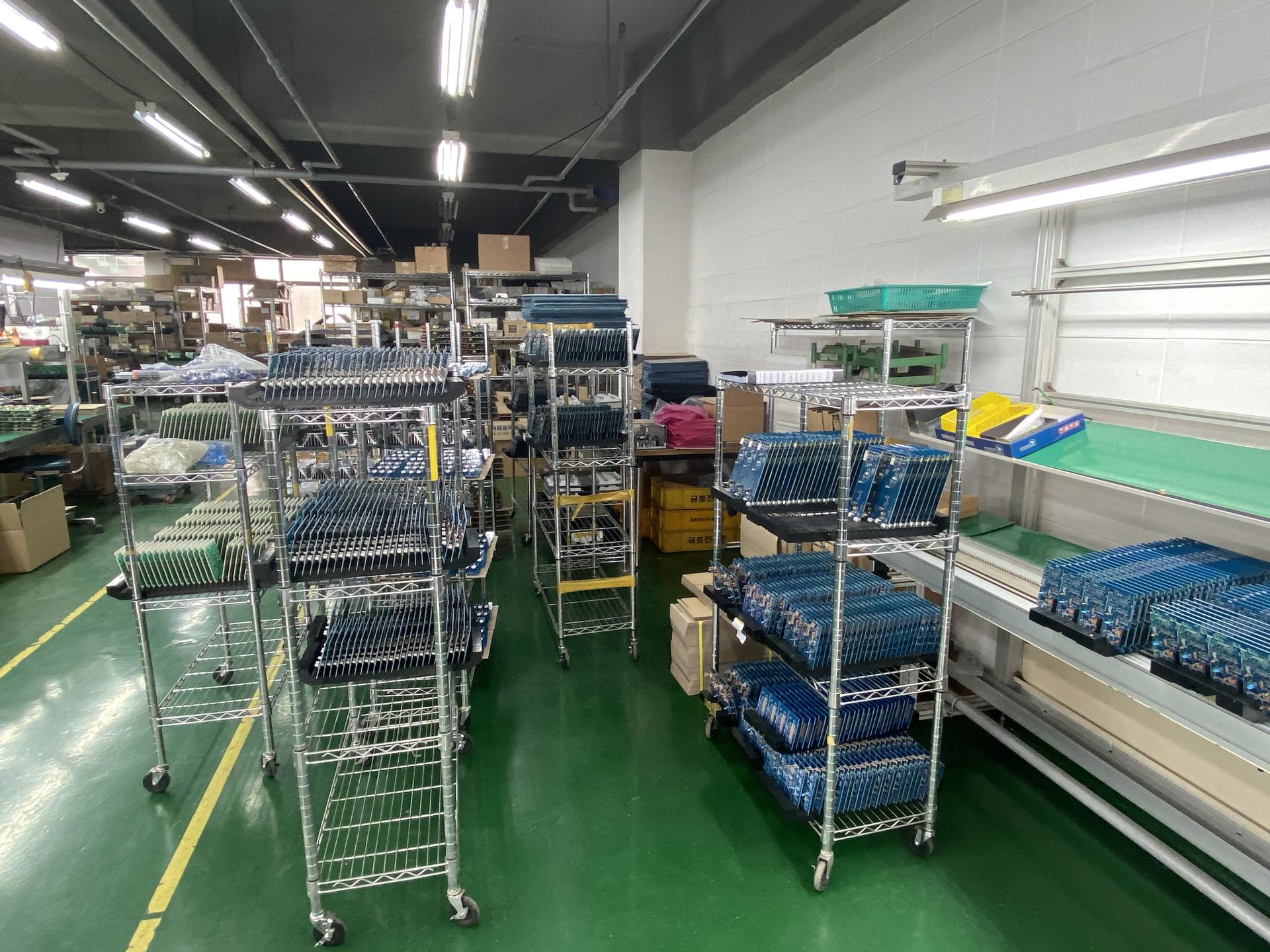 | 생산(수삽, 자삽- 부품 특성에 따른 공정처리) -필요한 제품들을 공정에 따라 나눠서 절차에 따라 생산을 진행합니다. | 완성, 검사, 테스트 -완성된 제품의 결함이나 테스트를 통하여 제품에 만전을 기합니다. | 출고 -정해진 출고날짜에 맞춰서 발주하신 업체에 납품을 합니다. | ||